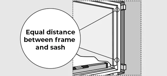Poznámka: U dřevohliníkových prvků je to přední hrana dřevěného rámu. Obecně platí, že hloubka spáry by měla být poloviční oproti její šířce. Pokud je spára široká 12 mm, těsnicí páska by měla být 6 mm od přední hrany rámu.