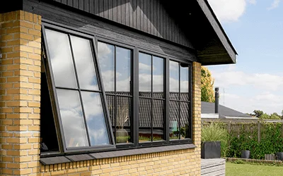 Dvojitá otevíravá okna perfektně ladí s tradiční cihlovou fasádou. Vytvářejí útulnou atmosféru uvnitř i venku.